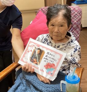 2025.10.03 お茶会&敬老会(ユニット心・虹のまち)②敬老会 敬老会では職員から心のこもったメッセージカードをプレゼントさせていただきました。職員からのメッセージに皆さま大変喜んでくれました。 text =特別養護老人ホーム 玉光苑 シェアする ツイート LINEに送る 前の記事次の記事 関連記事 お茶会&敬老会(ユニット心・虹のまち)①お茶会 クリスマス会(虹のまち・心のまち) 祝百歳☆誕生日会(光のまち・虹のまち) スタッフブログ一覧に戻る お問合せ 「初めての介護」「介護に関する各種ご相談」「資料請求」は下記までお気軽にお問合せ下さい。 介護のご相談はお気軽にお電話下さい 097-541-0344 【電話受付時間】8:30~17:30 苦情受付窓口