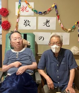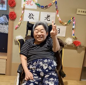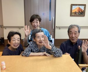 お茶会&敬老会の最後に記念写真を撮りました。ご面会に来苑されたご家族様と一緒に写真を撮ったりと皆さま笑顔が印象的でした。
