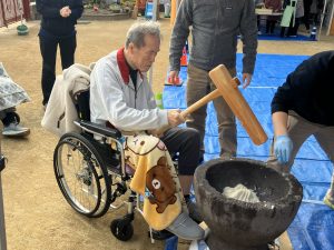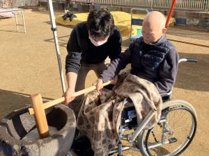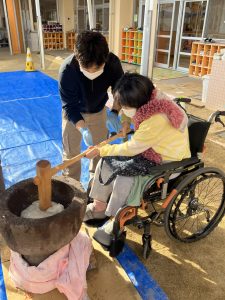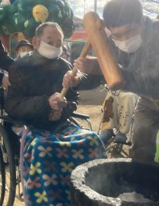 2025.12.31 餅つき 12月26日(金)毎年恒例の餅つきをこども園の保育園の園庭にて開催致しました。ご希望のご利用者様、園児たちも参加し「ヨイショー‼ ヨイショー‼」と可愛い声に合わせて餅つきをされました。出来たお餅は鏡餅にして事務所前に飾り、新年を迎える準備ができました。 本年も大変お世話になりました。 よいお年をお迎えください。text =特別養護老人ホーム 玉光苑 シェアする ツイート LINEに送る 前の記事 関連記事 お餅つき お餅つき スタッフブログ一覧に戻る お問合せ 「初めての介護」「介護に関する各種ご相談」「資料請求」は下記までお気軽にお問合せ下さい。 介護のご相談はお気軽にお電話下さい 097-541-0344 【電話受付時間】8:30~17:30 苦情受付窓口