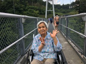 橋が渡れるかどうか、ご利用者も職員も不安の中時間の許す限り止むのを待っていると、空が段々と晴れだし雨が上がり橋を渡る事が出来ました。