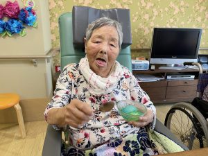 2階ユニットでは、6月の季節らしく「紫陽花」をイメージした羊羹を皆さんで作りました。